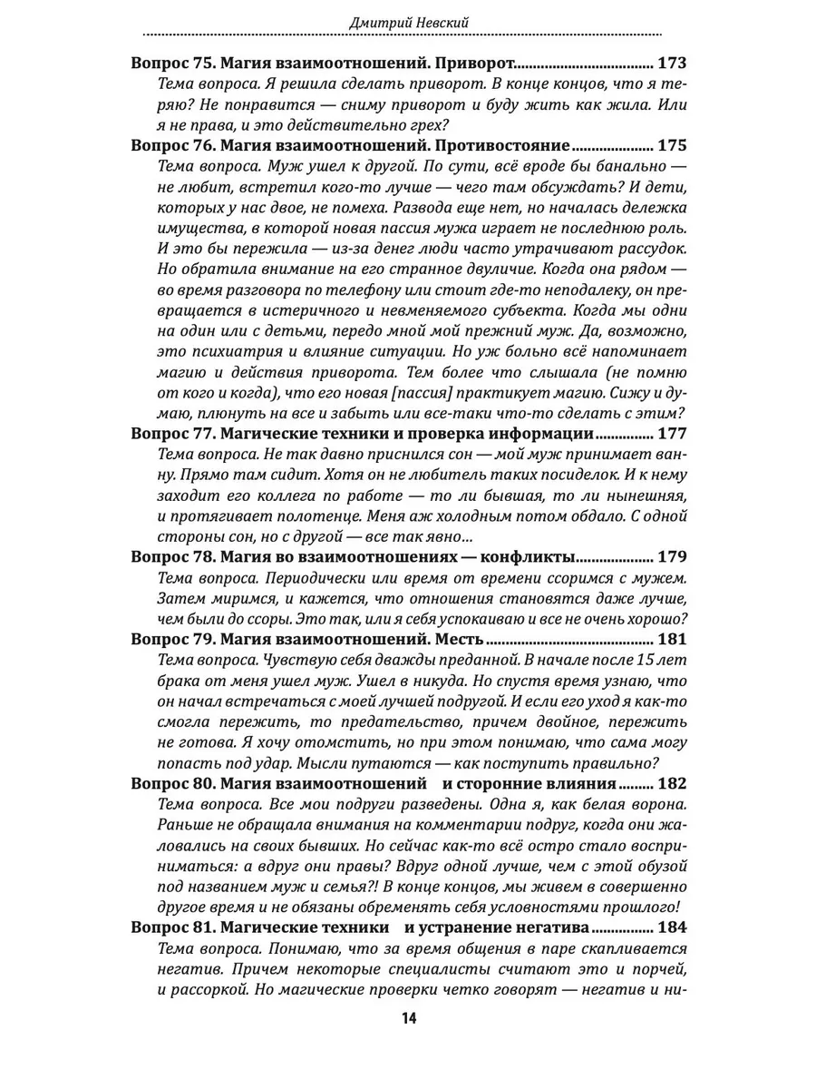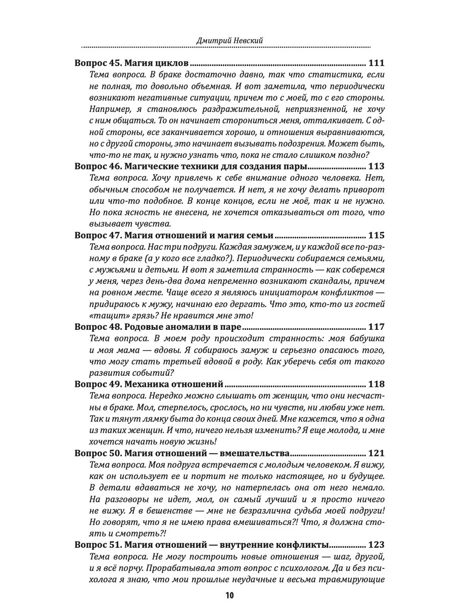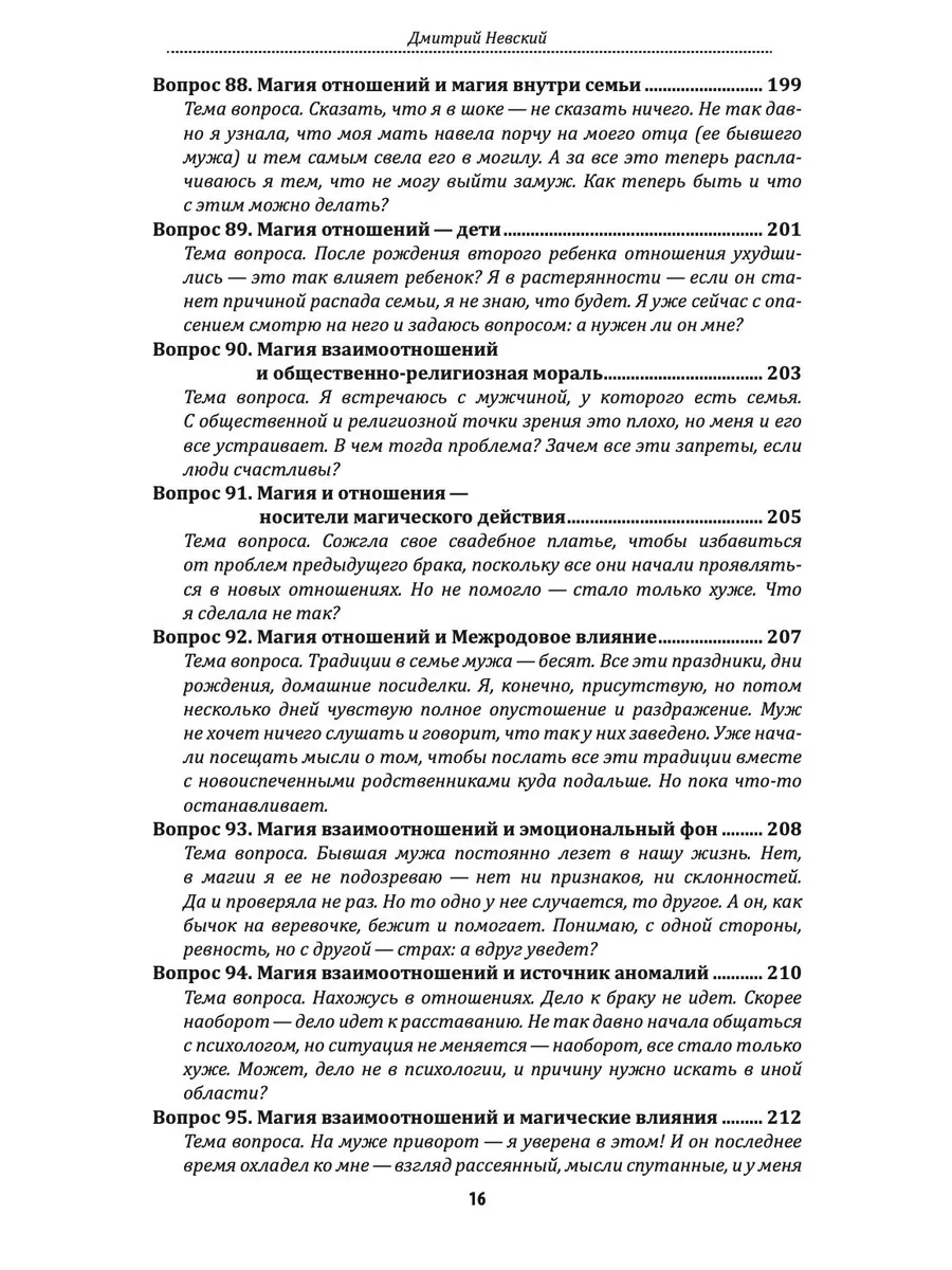 Книга из серии «100 вопросов по магии» — «Любовная магия и магия отношений», посвящена теме взаимоотношений в роду и между людьми, вопросам отношений и взаимоотношений, чувств, эмоций и множества иных факторов, влияющих на отношения в паре. Вы сможете не только получить ответы на наиболее распространенные вопросы, но и разобраться в механизмах ответов — наглядно понять, почему автор оперирует теми или иными данными. И, наверное, самое главное, вы сможете использовать магические технологии, которые помогут вам в работе с поставленными вопросами.