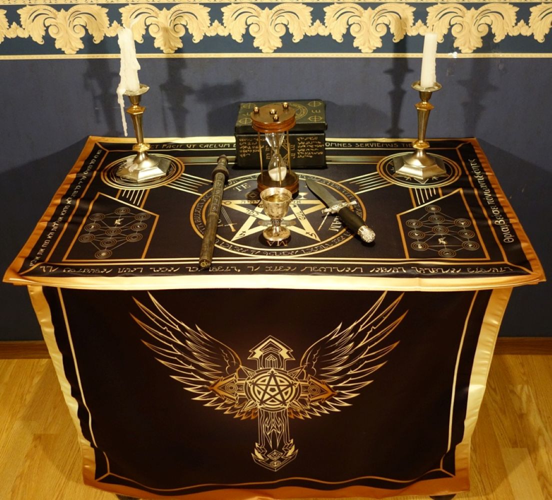 Алтарь Церемониальной Магии является Классическим Магическим Алтарем, который является неизменным атрибутом любой магической работы. Нет обряда или магического действия, который бы проводился вне Алтаря, который обеспечивает подпитку и контроль за проводимым действием. Алтарь Церемониальной магии усилен символами, которые обеспечат привлечение магической энергии. А цвет Алтаря позволит получить основную направленность влияния. Вы можете выбрать тот цвет, который необходим вам для проведения магической работы. Вы можете менять Алтари в зависимости от цели.Черный Алтарь – классический Алтарь, который позволяет проводить все основным магические действия.Размер Алтаря – 90х55 см, Подкладки 80х60 см.