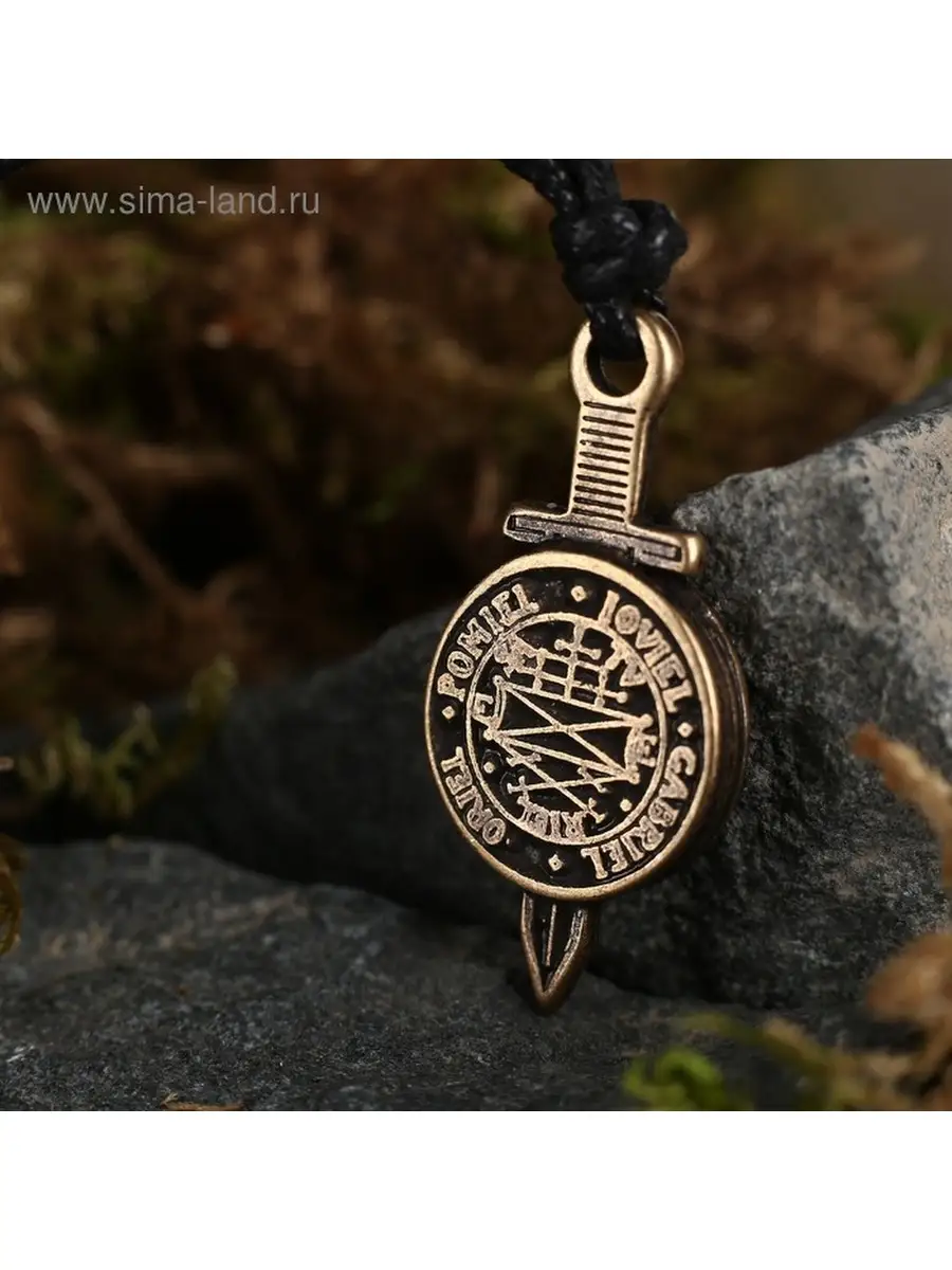 Амулет Божественный меч со щитом. Амулет является символом несгибаемости веры и характера. Щит знак четырёх стихий, защищает в любом месте и времени. Божественный меч стоит на страже принципов, обещаний, браков и верности, сохраняет чистоту помыслов и непоколебимый дух, готовый отразить зло.