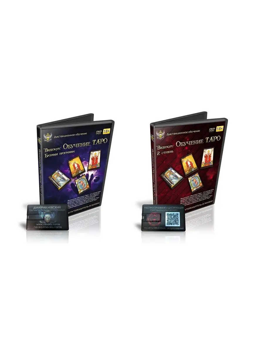 Дмитрий Невский. Видеокурс Обучение Таро. 1 курс и 2 курсы на флеш-носителеВидеокурс Обучения Таро - это пошаговая видеопрограмма обучения, состоящая из 10 видеолекций, в которых описывается весь путь изучения Таро, начиная от знакомства с техникой предсказания Таро и заканчивая разбором раскладов Таро.Базовая программа курса рассчитана на 8 академических часов и содержит весь необходимы материал, который поможет вам научится работе с картами Таро.Содержание курса- Вступительная лекция. Рассказ о предсказании с использованием Таро. Демонстрация первичных техник. Тонкости и нюансы выбора и работы с Таро.- 1 лекция Видеокурса Таро. Старший Аркан Таро. Знакомство со Старшими Арканами Таро. Демонстрация техник работы со старшим Арканом Таро- 2 лекция Видеокурса Таро. Тренировки работы с картами Таро. Тренировки работы с картами Таро. Обучение выбору значений и адаптации материала. Примеры и техники интерпретации карт Таро.- 3 лекция Видеокурса Таро. Расклады Таро. Расклады Старшего Аркана Таро. Тонкости и нюансы раскладов. Практическая демонстрация работы со Старшим Арканом Таро.- 4 лекция Видеокурса Таро. 12 Астрологических Домов. Работа с 12 Астрологическими домами старшим Арканом Таро. Практические примеры, тонкости и секреты расклада.- 5 лекция Видеокурса Таро. Младший Аркан 1 часть. Знакомство с младшим Арканом Таро. Изучение базовых принципов и значений Младшего Аркана Таро.- 6 лекция Видеокурса Таро. Младший Аркан 2 часть. Изучение классических значений младшего Аркана Таро. Адаптация и интерпретация значений Младшего Аркана Таро в предсказании.- 7 лекция Видеокурса Таро. Расклады Младшего Аркана Таро. Изучение раскладов с использованием Младшего Аркана Таро. Работа с полной колодой Таро в раскладах.- 8 лекция Видеокурса Таро. 12 Астрологических домов полной колодой. Работа с раскладом 12 Астрологических Домов полной колодой. Демонстрация работы, принципы интерпретации.- 9 лекция Видеокурса Таро. Люди в картах Таро. Персонификация расклада Таро, демонстрация влияния человека в раскладе. Описание типажей и схем поведения людей, запечатленных в Таро.Дмитрий Невский. Видеокурс Обучение Таро 2 ступень на флеш-носителеВидеокурс Обучения Таро - это пошаговая видеопрограмма обучения, состоящая из 10 видеолекций, в которых вы продолжите знакомство с картами Таро и раскроете новые возможности колоды.Содержание курса- 1 лекция - Оборотные карты Таро – принципы работы. Техники и примеры.- 2 лекция - Временные расклады Таро – определение времени события.- 3 лекция - Выявление магических воздействий при помощи Таро.- 4 лекция - Выявление заболевания и физиологических аномалий при помощи Таро.- 5 лекция - Психологическая и сексуальная совместимость людей в раскладе Взаимность- 6 лекция - Анализ событий и явлений при помощи Таро. Контроль за процессами и ситуациями.- 7 лекция - Обряды при помощи Таро – Корректировка личных отношений. Обряды Любовной магии.- 8 лекция - Обряды при помощи Таро – Денежные обряды и Управление карьерой.- 9 лекция - Корректировка ситуаций при помощи Таро – Алтарь 12 домов.- 10 лекция - Корректировка ситуаций при помощи Таро – Алтарь Анх.Продолжительность 1 курса 360 минут. Продолжительностьт 2 курса 320 минутВы получаете запись курса на флеш-носителе USB-формата и можете использовать его на телевизорах с соответствующим портом, а