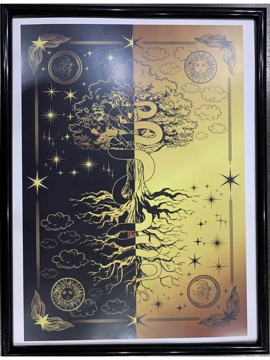 Древо-Постер Древо жизни черно-золотое в рамке А3 П-003Постер Древо жизни черно-золотое в рамкеРазмер А 3 (297х420 мм).Рамка 300х400 мм, пластик, пластиковое стеклоБумага.