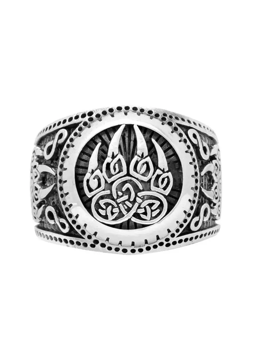 Кольцо скандинавское Лапа медведя берсерка сила и могущество. В скандинавских сагах упоминаются загадочные местные богатыри берсерки, обладавшие страшной силой, несокрушимой мощью и дикой отвагой. По толкованию некоторых исследователей, берсерк переводится как медвежья шкура или в медвежьей шкуре. У этих интереснейших персонажах скандинавских произведений можно увидеть родовые объединения с их общим тотемом, медведем.