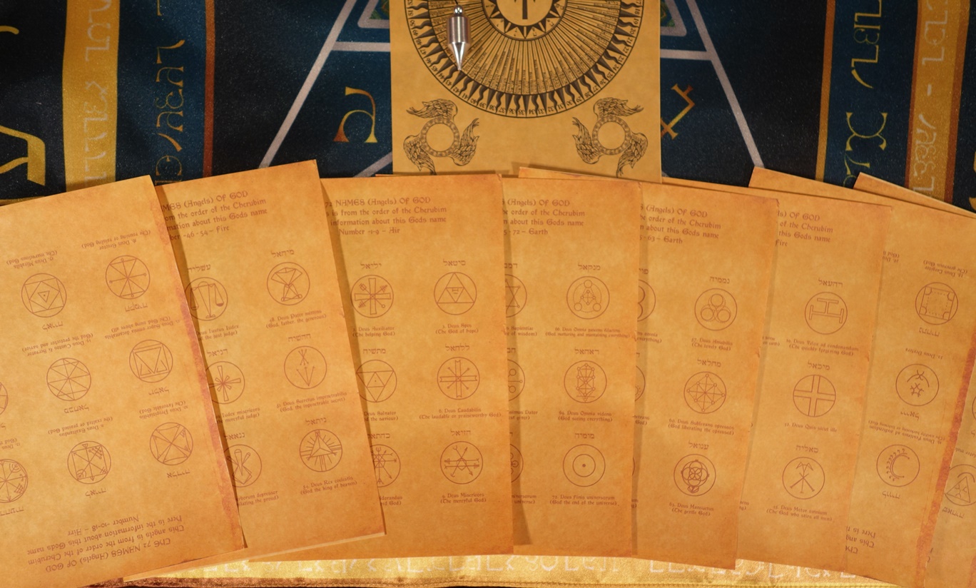 Комплект 72 Имени Бога – Шемхамфораш – Алтарть Призыва В древней книге Каббалы приводятся имена 72 Гениев или 72 Имен Бога – это силы, которые обладают определенным влиянием и могут помочь человеку в трудной ситуации. Алтарть 72 Имени Бога создан по древней технологии и предназначен для работы с Древними Силами. В Комплект Алтаря 72 Имени Бога входят: - Алтарная скатеть для вызова Гениев – размер 60х60 см. 24х24 дюйма. - Свитки 72 Сигил 72 Имен Бога – 8 свитков по 9 имен на каждом. - Свитки 72 Имен Бога – расшифровка значений каждого имени. - Свиток 72 Имен Бога для определения Имени помощи. - Маятник - 2 магические свечи