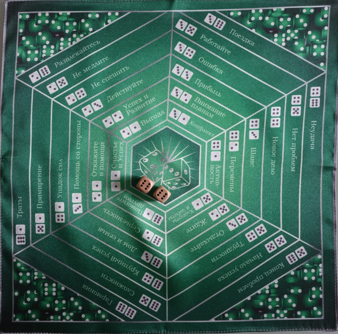 Скатерть Предсказание Игральные кости позволит получить быстрый и точный совет на ваш вопрос. Вам не нужно искать справочники или книги, вам не нужно долго изучать науку предсказания. Задайте вопрос, бросьте на скатерть 2 игральный кости и получите ответ.