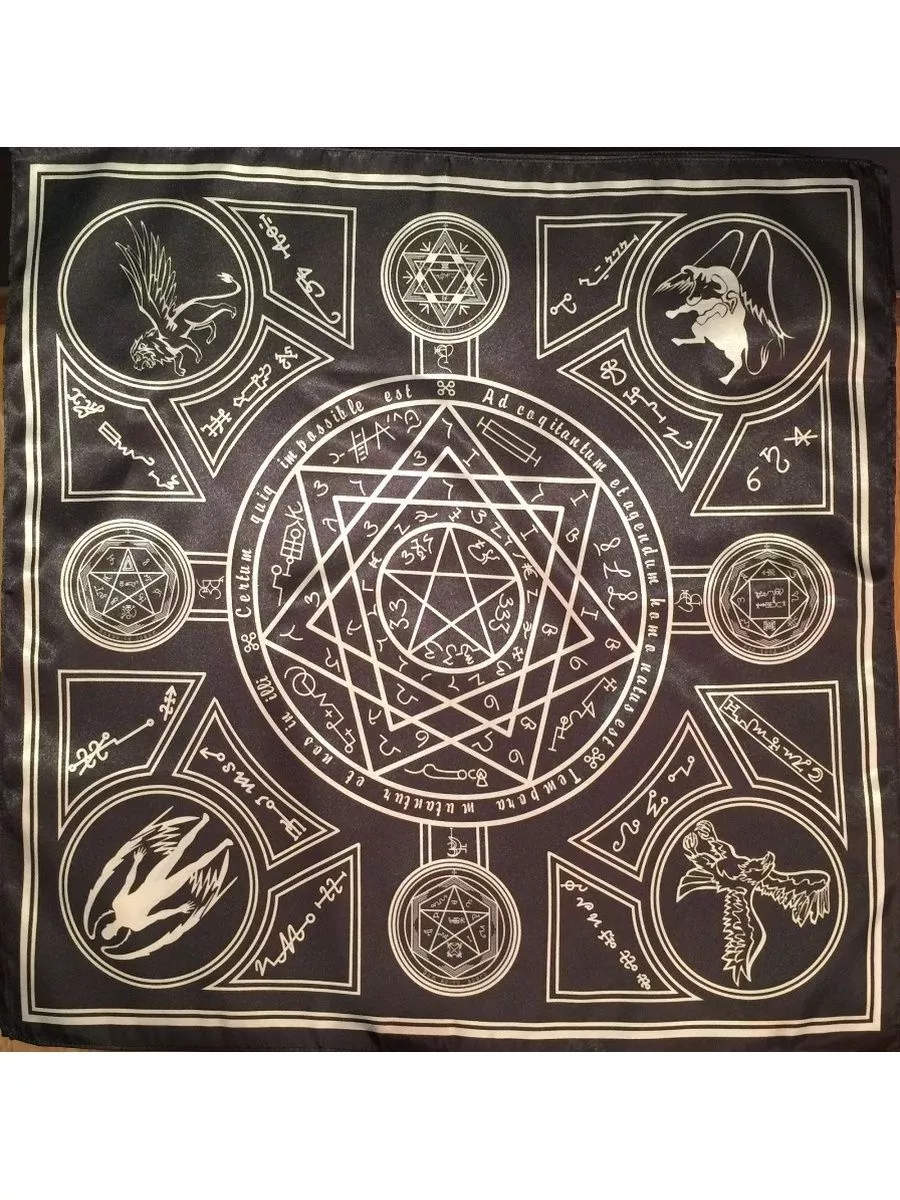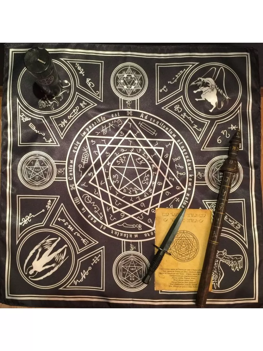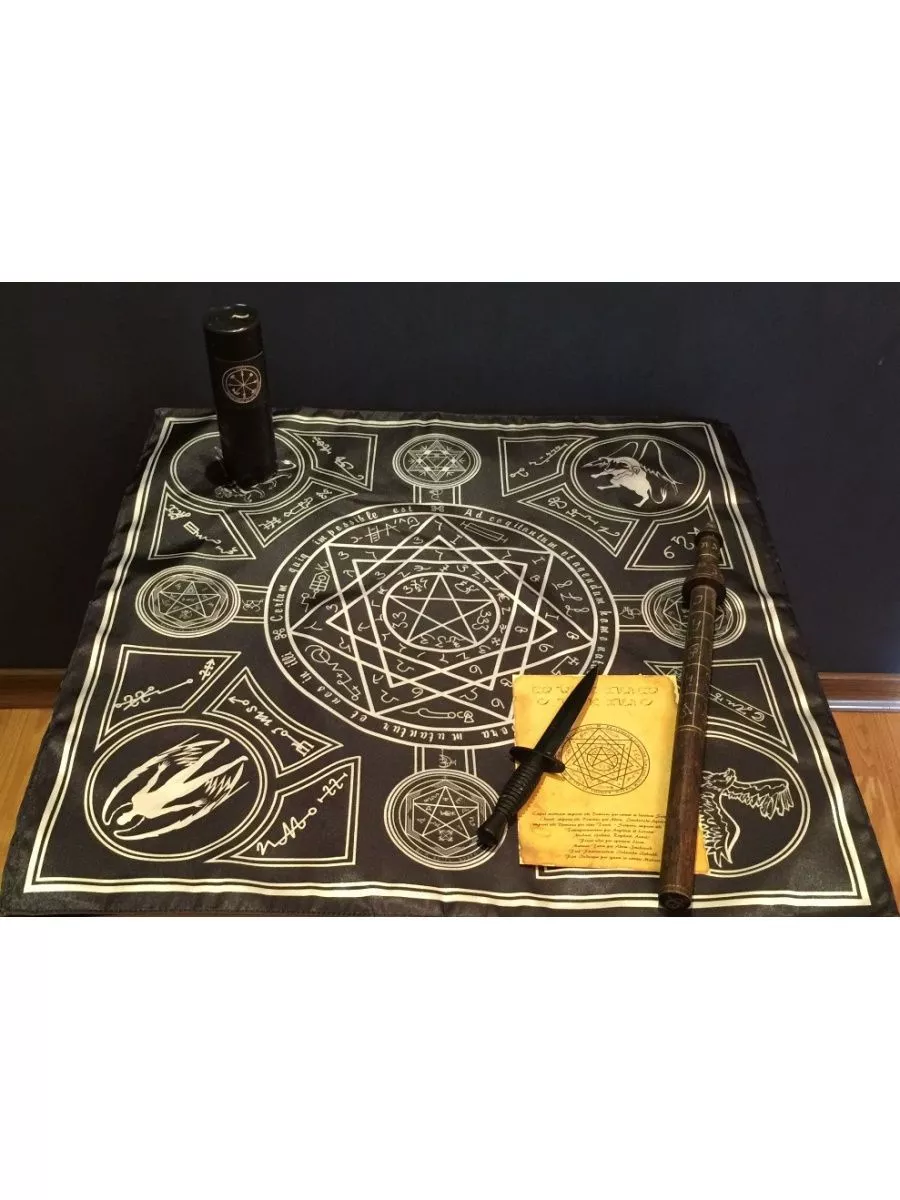 Скатерть Алтарь Энохеанской магии. Скатерть Алтарь Энохеанской магии это основа Магии Ангелов, позволяющая обращаться к Силам, взаимодействовать с ними, проводить обряды и ритуалы Энохеанской магии. В структуре скатерти представлены все Силы 4 Ангела Сторон Света, 12 Зодиакальных Ангелов, Ангелы 4х стихий и Ангелы Качеств человека. Скареть Алтарь Энохеанской магии может быть использована в работе с Архангельскими свечами и Свечам Ангелов дней недели, она позволит комбинировать влияние энергии, создавая новые композиции для вашей работы. Размер 60х60 см.