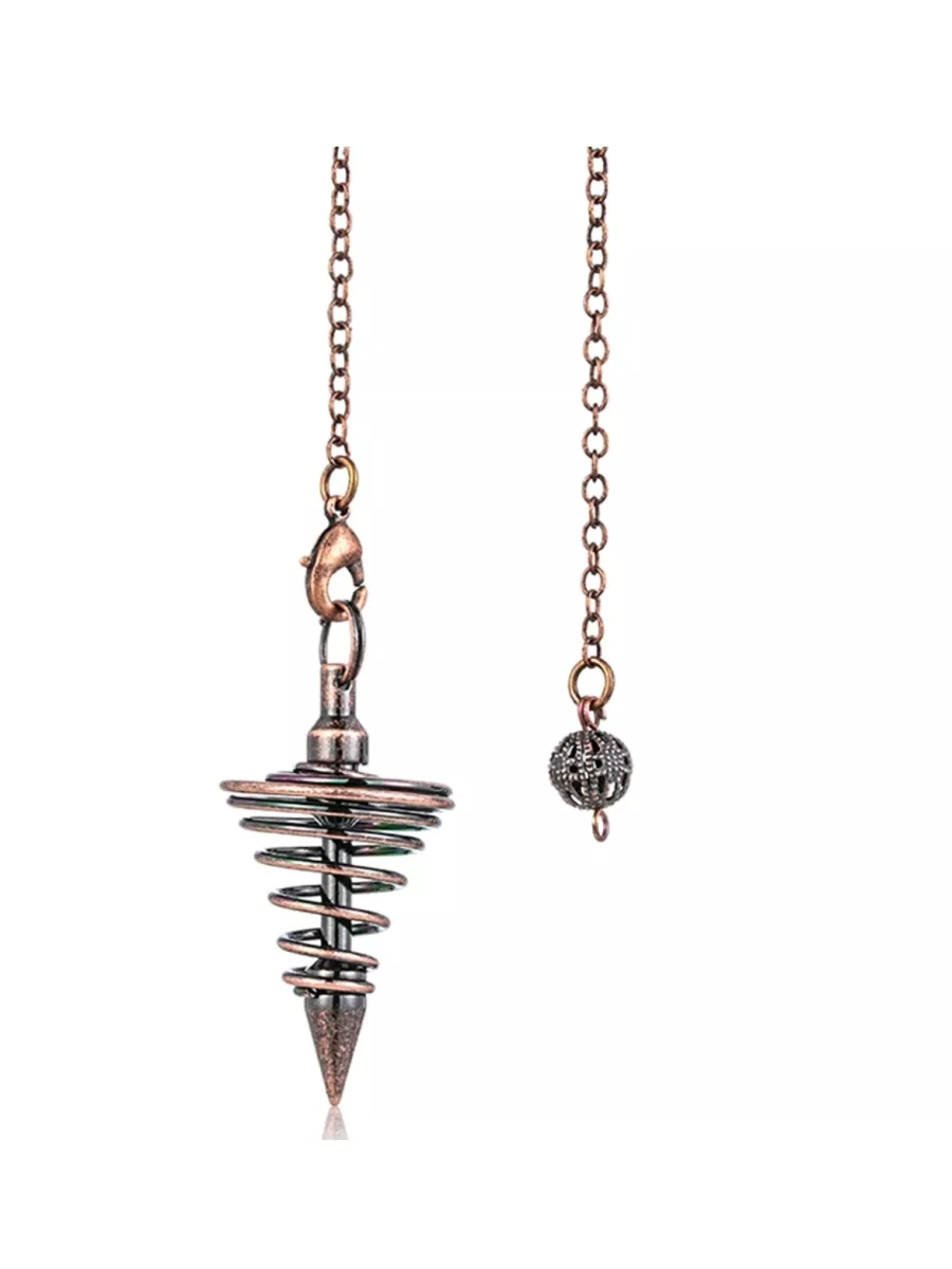 Маятник биолокационный Спираль Бронзовый цвет Маятник Спираль по своему внешнему виду напоминает конусообразную спираль, подвешенную на нити или цепи. Маятник Спираль обладает нейтральным характером за счет того, что рассеивает энергию, с которой вступает в контакт. За счет этого свойства он долго остается чистым и не требует дополнительного ухода. Маятник прекрасно чувствует малейшие изменения энергии, но при этом даже большой энергетический выброс не могут вывести его из нормального режима работы. В основе своей маятник Спираль применяется специалистами и теми, кто имеет большой опыт работы с маятниками. Он очень быстро адаптирует информацию и выдает ответы. А способность к столь быстрой реакции и умение ее осознавать приходит только с опытом. Чаще всего используется в полевых условиях, когда работа ведется в неподготовленном месте, или приходится ходить с маятником, удерживая его на весу.