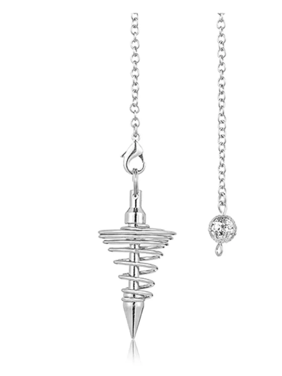 Маятник биолокационный Спираль Серебряный цвет Маятник Спираль по своему внешнему виду напоминает конусообразную спираль, подвешенную на нити или цепи.Маятник Спираль обладает нейтральным характером за счет того, что рассеивает энергию, с которой вступает в контакт. За счет этого свойства он долго остается чистым и не требует дополнительного ухода.Маятник прекрасно чувствует малейшие изменения энергии, но при этом даже большой энергетический выброс не могут вывести его из нормального режима работы.В основе своей маятник Спираль применяется специалистами и теми, кто имеет большой опыт работы с маятниками. Он очень быстро адаптирует информацию и выдает ответы. А способность к столь быстрой реакции и умение ее осознавать приходит только с опытом.Чаще всего используется в полевых условиях, когда работа ведется в неподготовленном месте, или приходится ходить с маятником, удерживая его на весу.