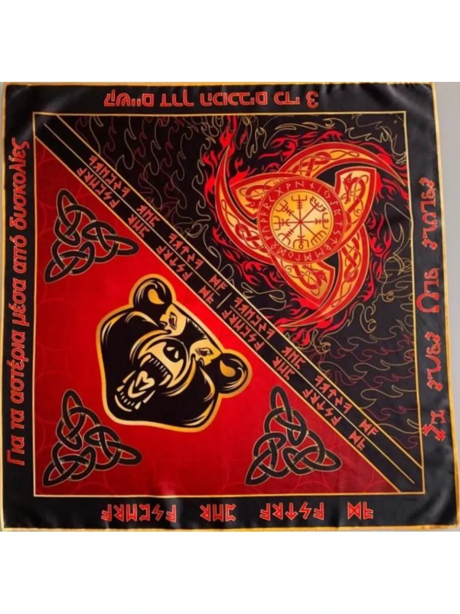 Платок - Бандана Медвежья сила - Скандинавский стиль Платок - Бандана Медвежья сила - Скандинавский стиль - символизирует силу и мощь древней силы. Платок может быть использован для повседневного ношения и для украшения в определенные моменты жизни. Размер: 70х70 сантиметров Ткань: шармус люкс - мягкая и приятная на ощупь.