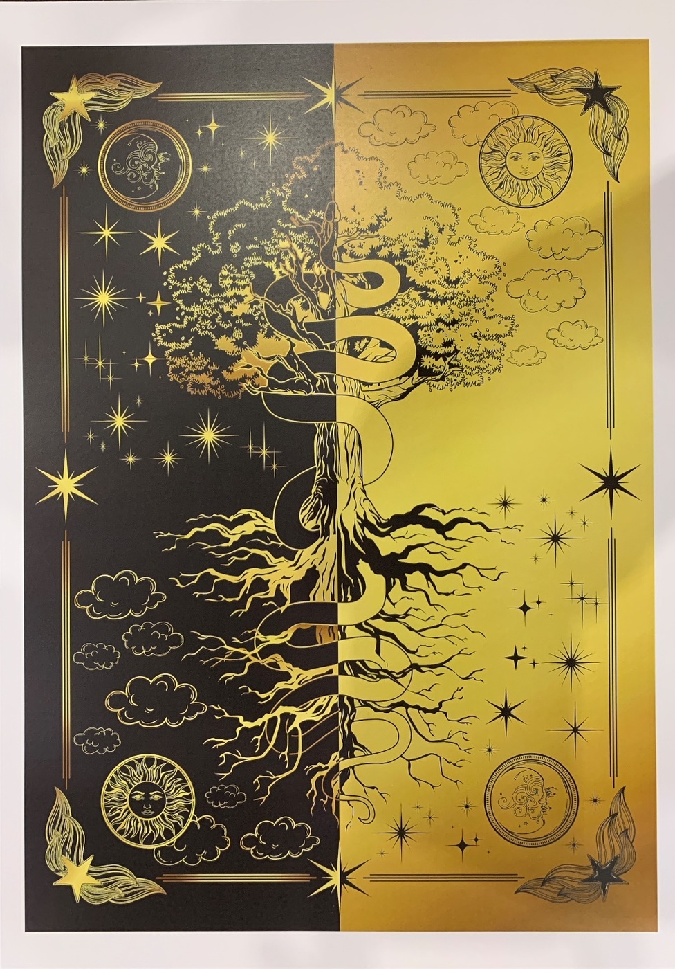 Постер Древо жизни черно-золотое А3