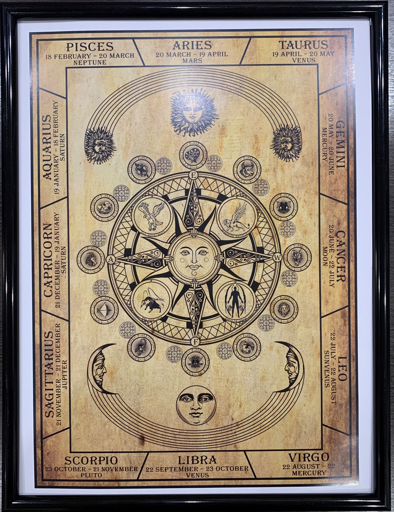 Постер Небесный Зодиак уникальна по своей композиции. Она содержит указание всех 12 Знаков Зодиака и Символы 12 Гениев Каббалы, которые являются покровителями каждого знака Зодиака.