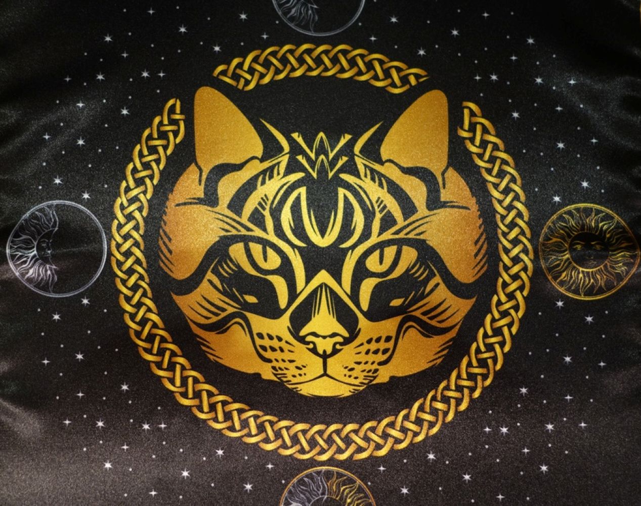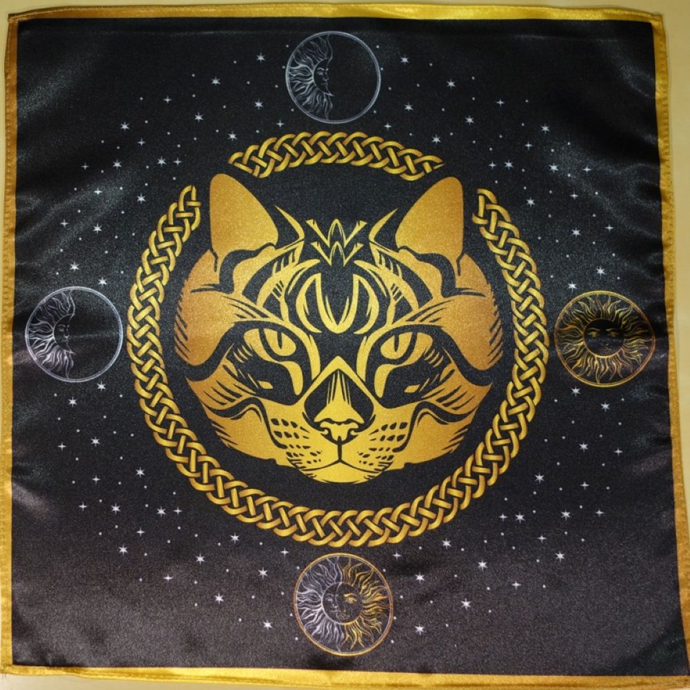 Скатерть Декоративная Предсказательная Черная кошка малая Кошка – символ хитрости, изворотливости и прозорливости. И в то же самое время кошка – покровитель домашнего очага – она следит за порядком и спокойствием в дом. А может быть кошка это просто кошка. Представляем вам Скатерть Декоративная Предсказательная Черная кошка – она будет прекрасным украшением вашего дома или рабочего места. Размер скатерти 40х40 см. Материал – атлас. Стирается в стиральной машине, не тускнеет, не линяет.