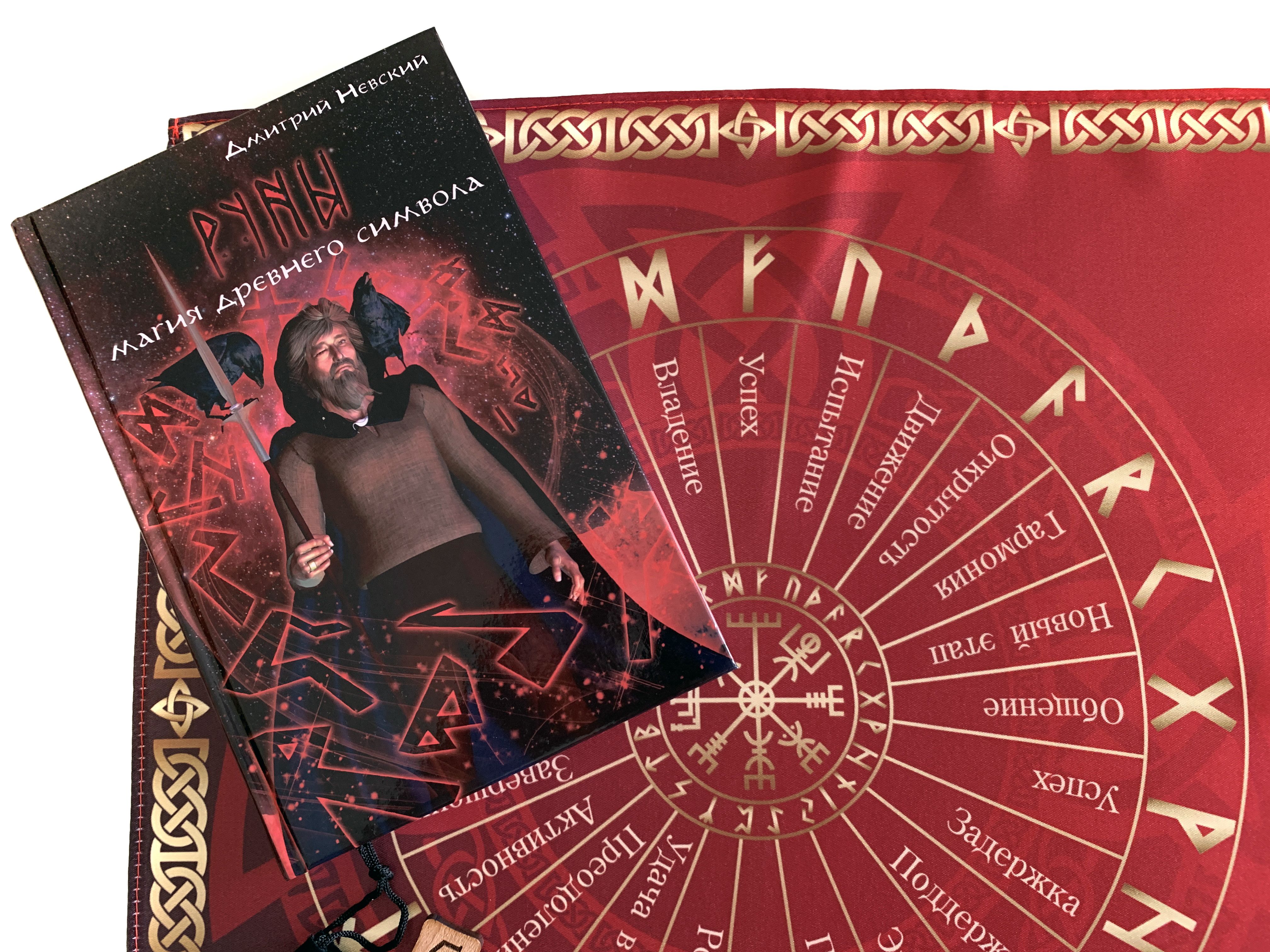 Рунический комплект Скандинавские Руна + Скатерть + Книга Мудрость рун