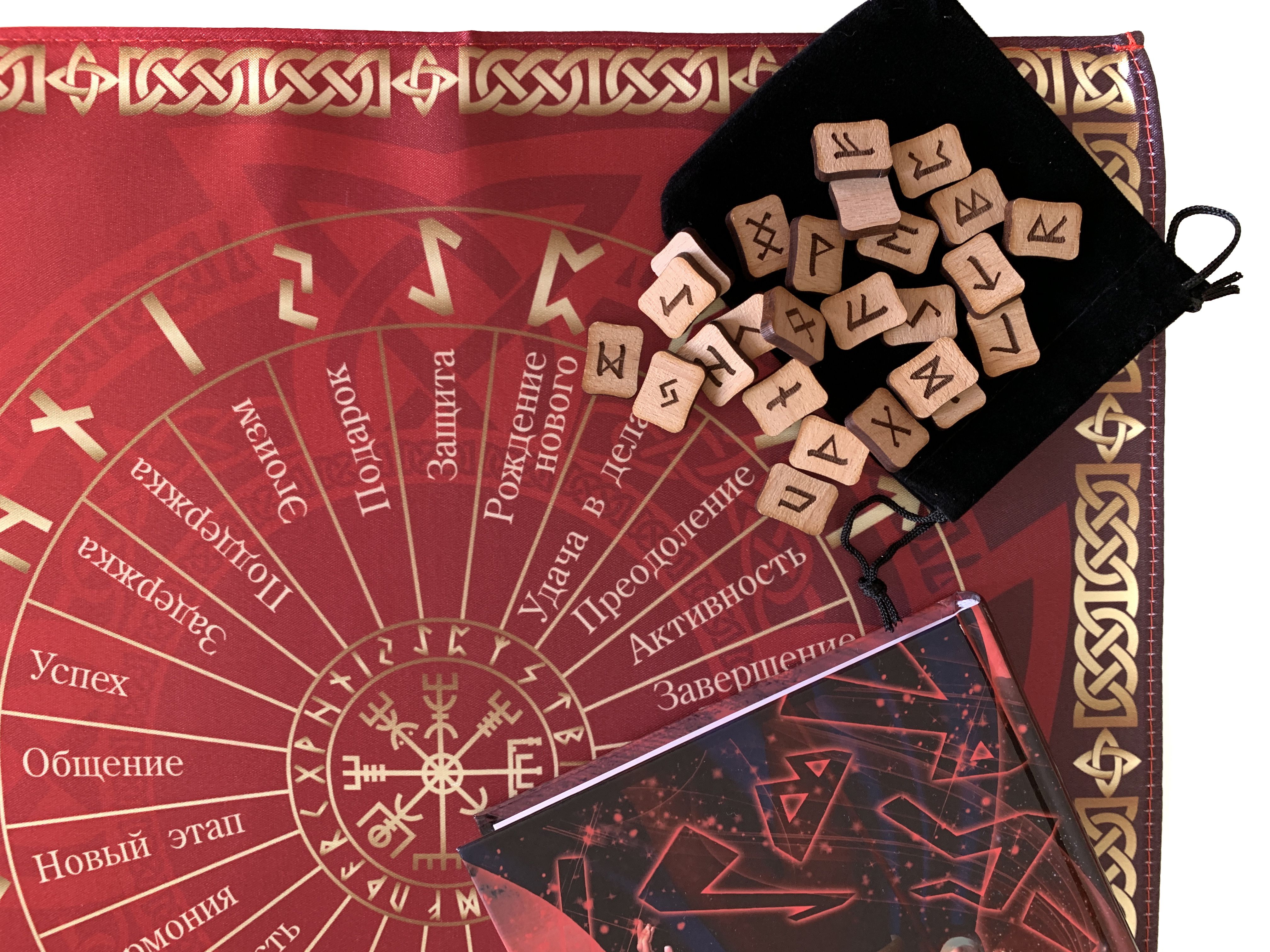 Рунический комплект создан для тех, кто хочет сразу начать работать с рунами – гадать, угадывать, предсказывать. В комплекте вы увидите скатерть, которая поможет вам быстро и эффективно разобраться с техникой работы рунической магии. А также вы найдете мешочек с деревянными рунами, которые полностью готовы к работе.