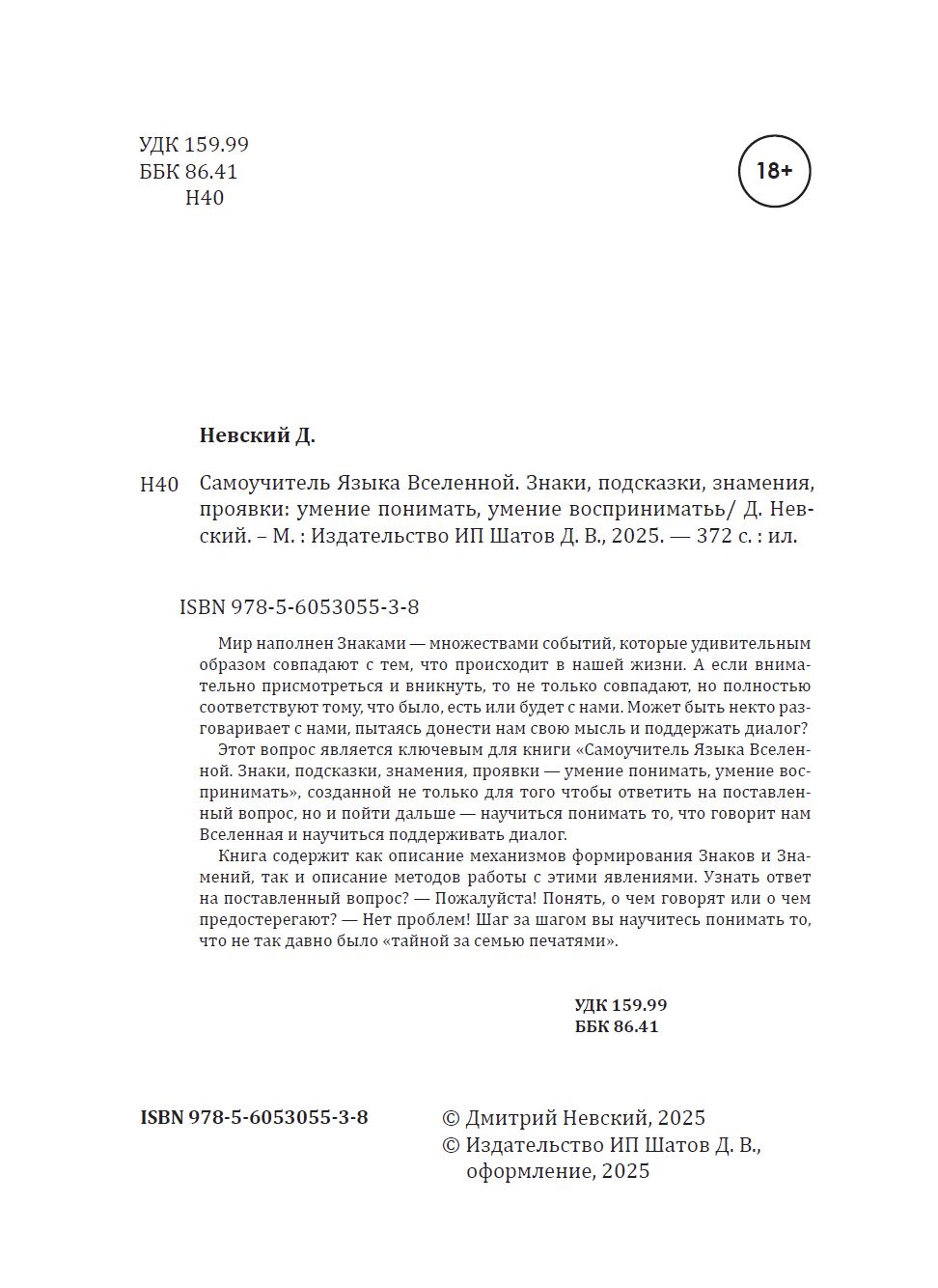 Этот вопрос является ключевым для книги «Самоучитель Языка Вселенной. Знаки, подсказки, знамения, проявки – умение понимать, умение воспринимать», созданной не только для того чтобы ответить на поставленный вопрос, но и пойти дальше – научиться понимать то, что говорит нам Вселенная и научиться поддерживать диалог.