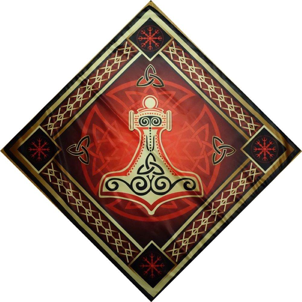 Алтарная Церемониальная Скатерть Гнев Тора (наказание врага) используется для магической работы с Магией свечей и Обрядовой рунической магей. Основная специализация работы на скатерти Гнев Тора: устранение магических влияний, наказание и воздаяние врагов, устранение проблем и препятствий. Скатерть Гнев Тора является силовой и для применения требует понимания рабочих процессов. Инструкция прилагается Размер 80 х 80 см