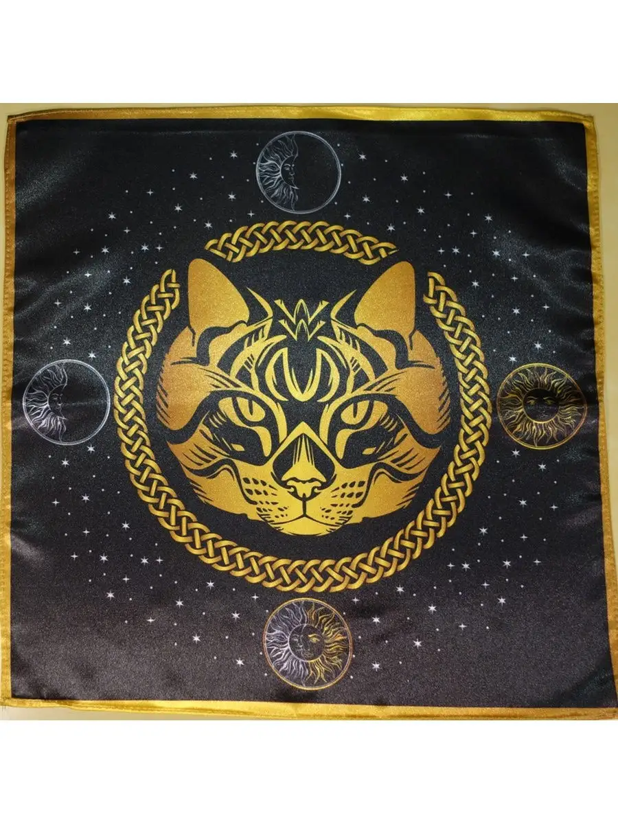 Скатерть Декоративная Предсказательная Черная кошка средняя. Кошка, это символ хитрости, изворотливости и прозорливости. И в то же самое время кошка покровитель домашнего очага, она следит за порядком и спокойствием в дом. А может быть кошка, это просто кошка. Представляем вам Скатерть Декоративная Предсказательная Черная кошка, она будет прекрасным украшением вашего дома или рабочего места. Размер скатерти 60х60 см. Материал сатен.