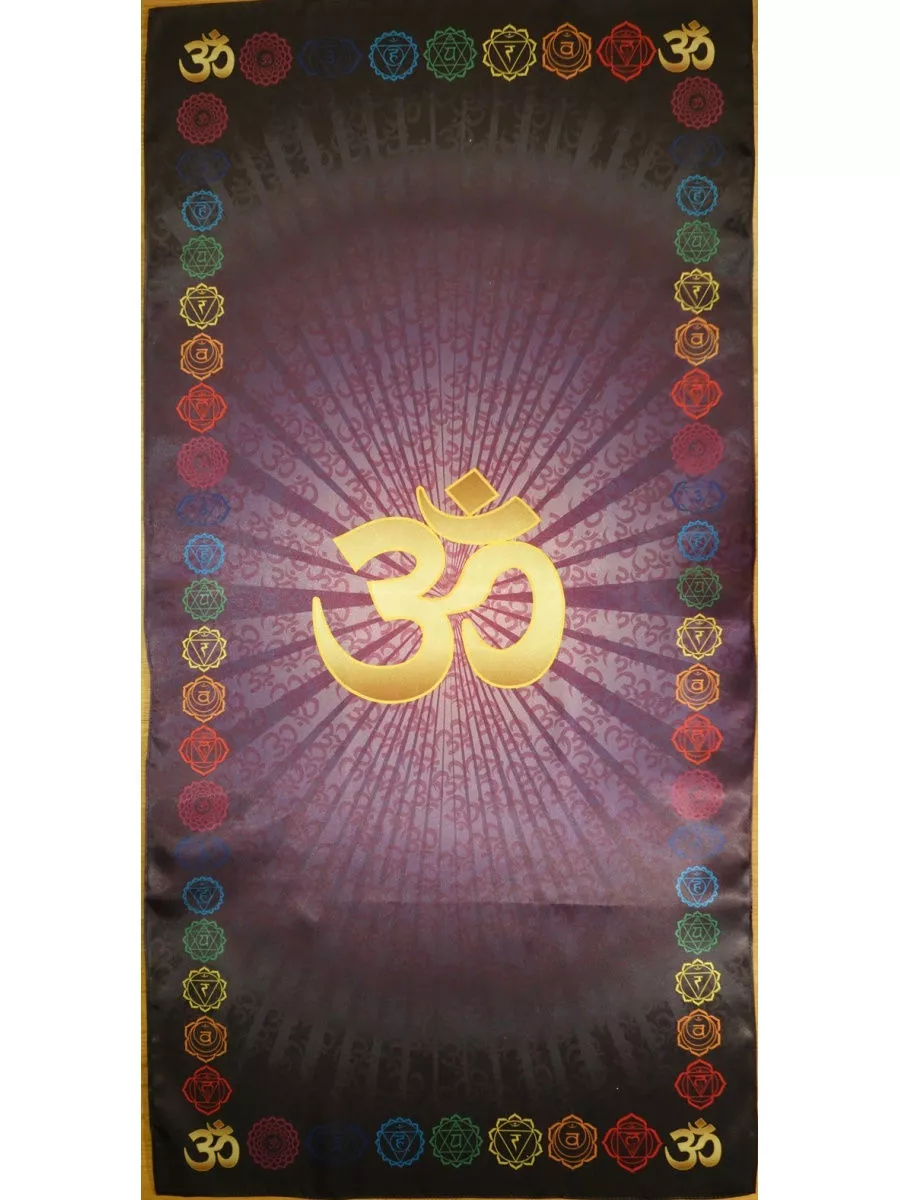 Скатерть для медитаций и йоги Аум, чакры Сахасрары, фиолетовая, большая. Мистический слог Аум, самое священное из всех слов в Индии. Это призыв, благословение, заверение и обещание. Символ чакры окружен символами, которые позволяют вам настроиться на нужную энергию во время медитации. Сахасрара, теменная чакра, это чакра связи с космосом, Творцом и Высшими Мирами. Цвет фиолетовый. Сахасрара, это чакра сверхсознания. Ее деятельность определяет единение с Богом, существуют контакты с высшими уровнями развития. Размер 115x55 см.