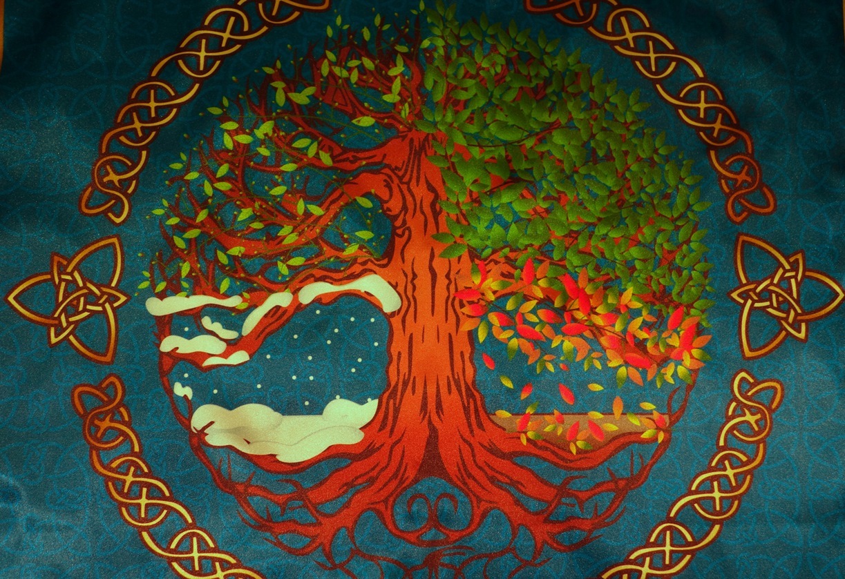 Скатерть Викканская Языческая традиция Времена года большая Скатерть Викканская Времена года создана в качстве украшения интерьера. Но она может использоваться и как обрядовый алтарть при проведении церемоний Обрядов Колеса года. Скатерть содержит изображение 4-х времен года – показывает циклиность процессов, происходящих в природе. Размер скатерти 140х140 см. Материал – атлас. Стирается в стиральной машине, не тускнеет, не линяет.