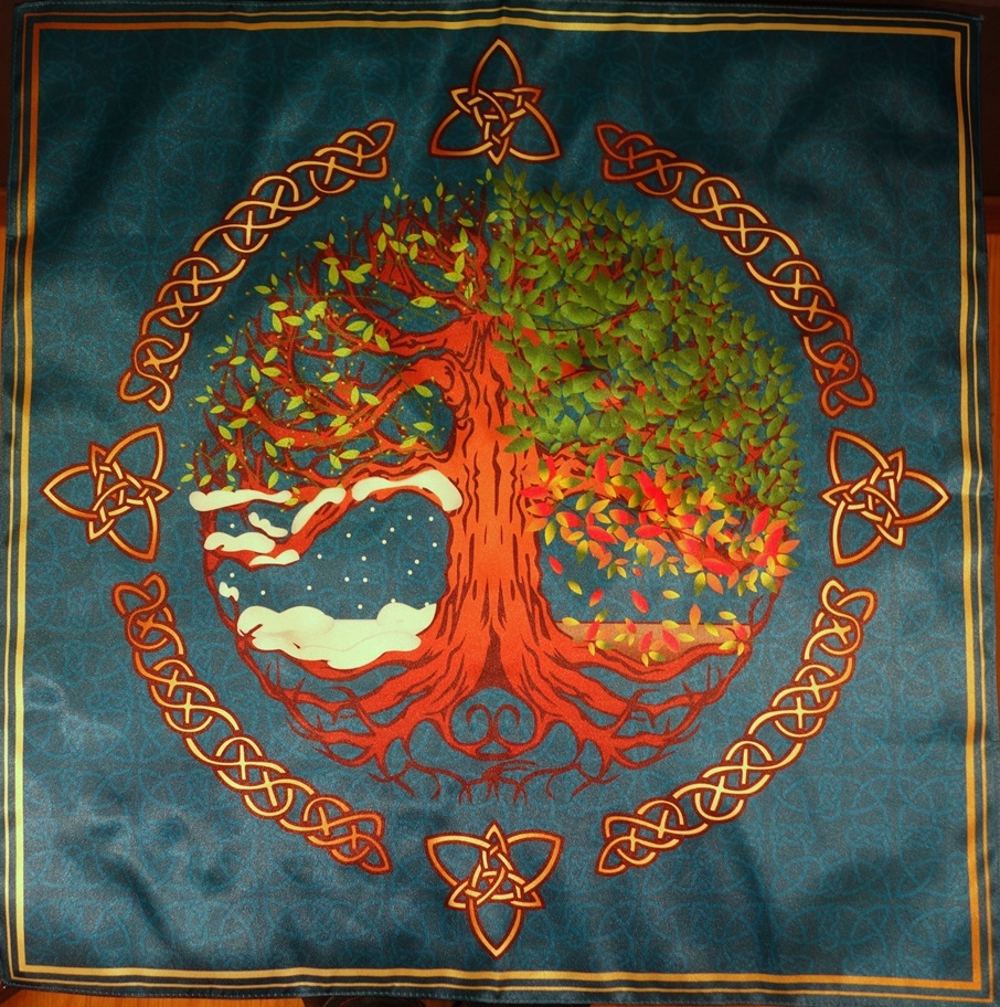 Скатерть Викканская Времена года создана в качестве украшения интерьера. Но она может использоваться и как обрядовый алтарь при проведении церемоний Обрядов Колеса года. Скатерть содержит изображение 4-х времен года – показывает цикличность процессов, происходящих в природе.