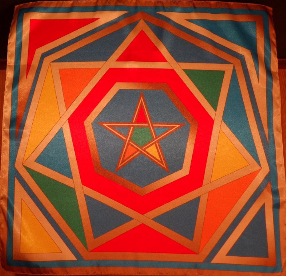 Скатерть Звезда Эноха – Звезда Ангелов Энохеанская Звезда Ангелов выполнена в цветном стиле – нет букв и символов – только цвета 7 Ангелов и 7 Планет, передающие свою силу в окружающий мир. Звезда Ангелов – это мощный и в то же время изящный магический атрибут, который способен украсить интерьер любого эзотерика. Размер 60х60 см.