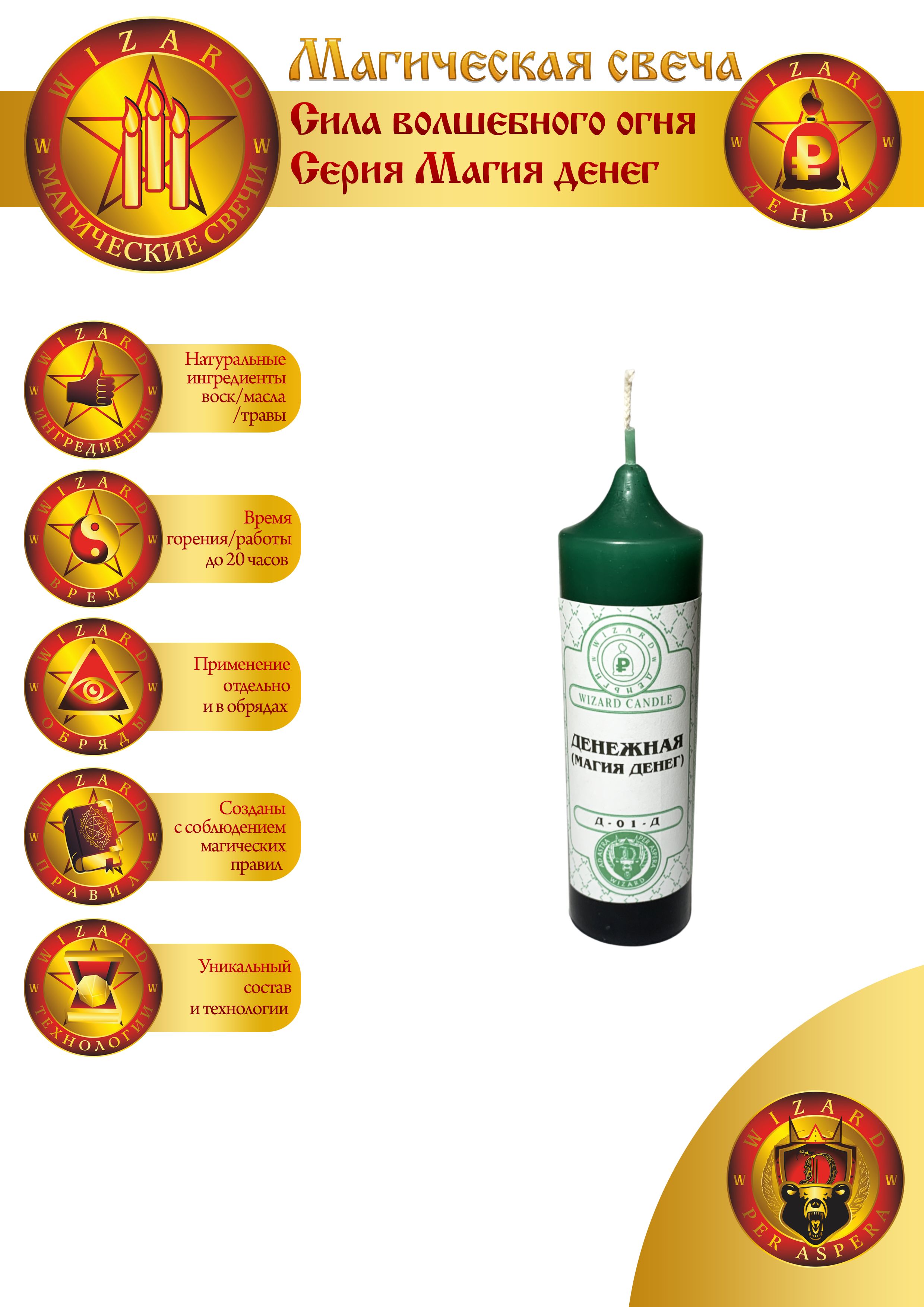 Свеча, обладающая Общим влиянием на денежные потоки. Она применяется как свеча Общего влияния, что очень удобно в случае, когда нужно повлиять на финансовую ситуацию в целом. Также прекрасно ведет себя при проверках различных финансовых вопросов, когда нужно понять, в чем причины той или иной финансовой аномалии.