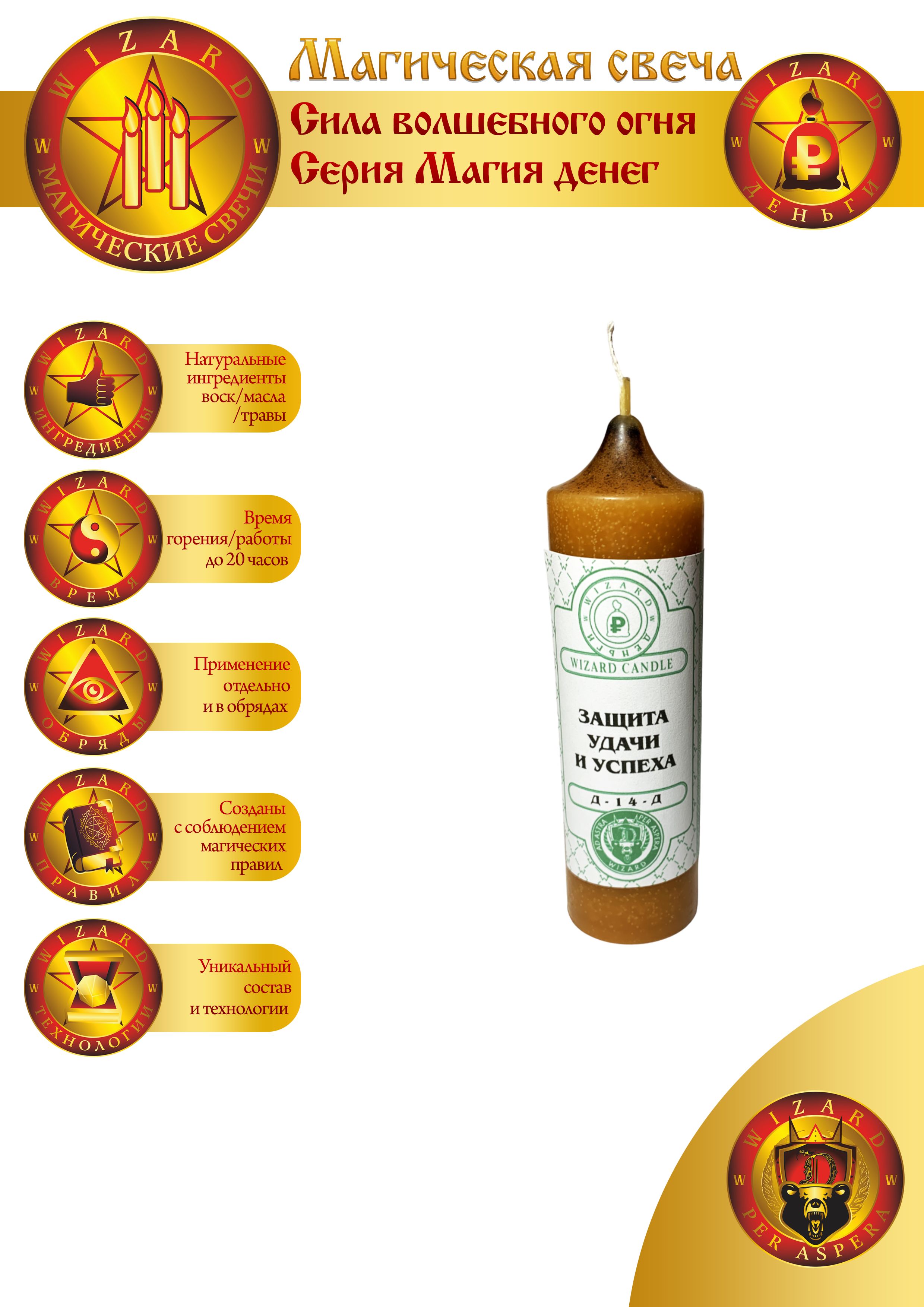 Задача Свечи Защиты удачи и успеха – обеспечить контроль и безопасность и существующих, и перспективных наработок в реальной сфере интересов человека. Свеча используется и для оценки существующей защиты, и для формирования схем защиты в целом.