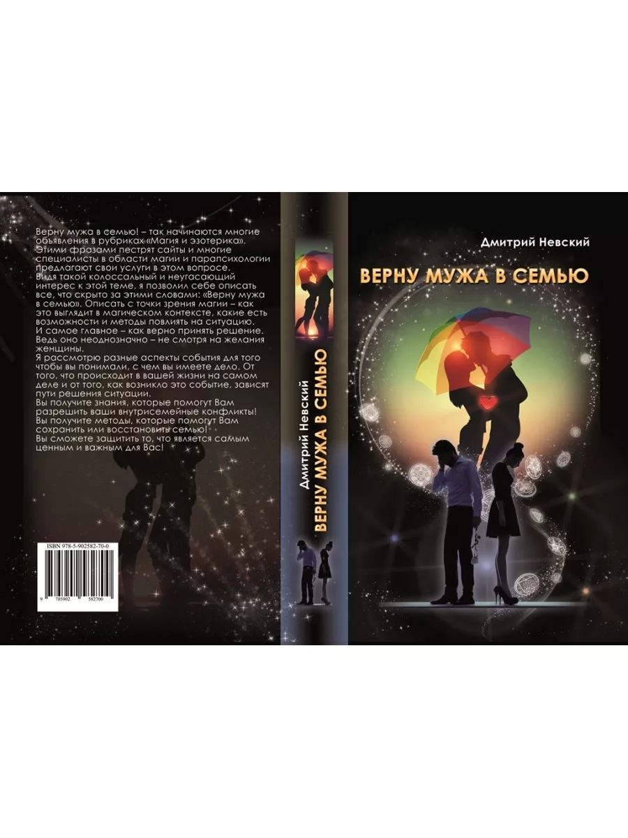 Дмитрий Невский. Верну мужа в семью. Верну мужа в семью! так начинаются многие объявления в рубриках Магия и эзотерика. Этими фразами пестрят сайты и многие специалисты в области магии и парапсихологии предлагают свои услуги в этом вопросе. Видя такой колоссальный и неугасающий интерес к этой теме, я позволил себе описать все, что скрыто за этими словами: Верну мужа в семью. Описать с точки зрения магии, как это выглядит в магическом контексте, какие есть возможности и методы повлиять на ситуацию. И самое главное, как верно принять решение. Ведь оно неоднозначно,не смотря на желания женщины. Я рассмотрю разные аспекты события для того чтобы вы понимали, с чем вы имеете дело. От того, что происходит в вашей жизни на самом деле и от того, как возникло это событие, зависят пути решения ситуации. И, безусловно, Вы получите различные рекомендации, рецепты и методы, которые помогут сохранить или восстановить вашу семью.
