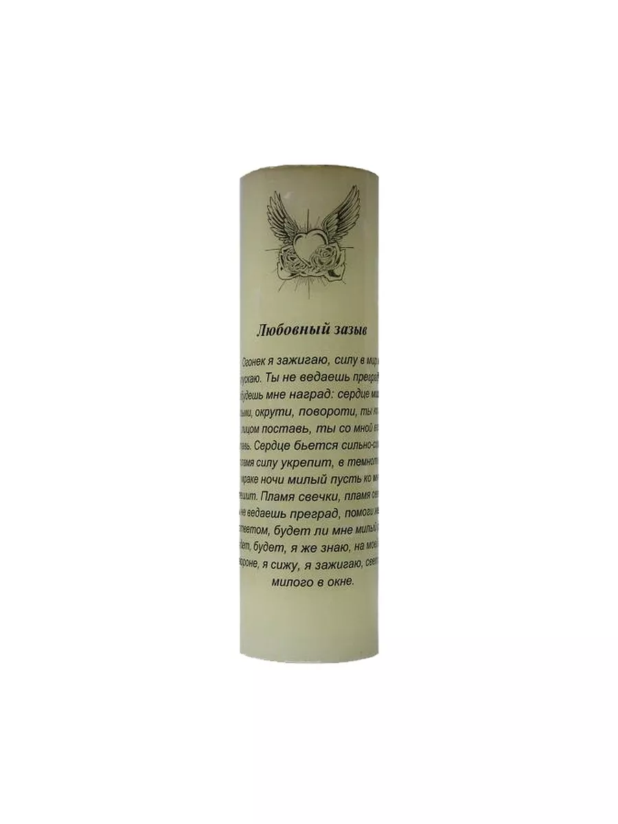 Заговорная свеча Любовный зазыв (Привлечение) Заговорная свеча Любовный зазыв используется для того, чтобы позвать или вызвать нужного вам человека. Важно, чтобы он испытывал к вам какие-то чувства, которые будут усилены свечей. Заговорные свечи используют в своем влиянии силу Слова - заговора, который произносится на свече и Силу Огня, который усиливает Действие Слова. Это делает влияние Заговорных свечей уникальным, не похожим ни на одни Магические свечи. Размер: 50 х 160 мм Вес: 280 гр Состав: пчелиный воск, парафин, масла, травы.